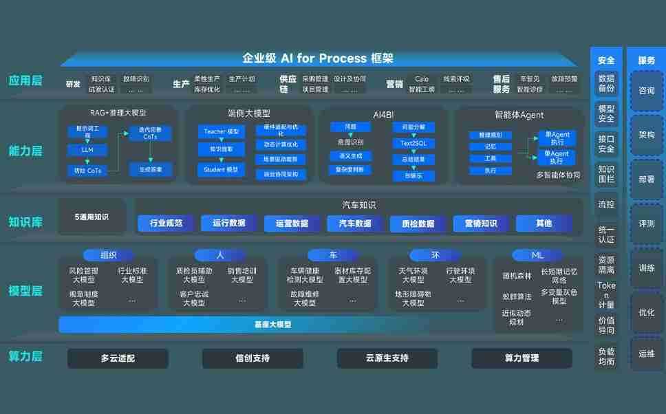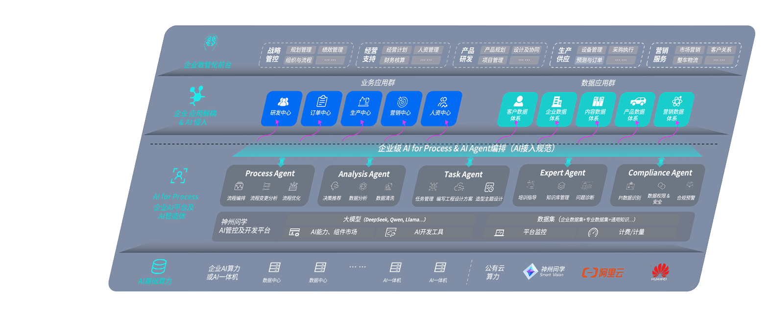 尊龙集团问学智车解决方案是一套基于AI技术的汽车行业智能化系统,,,,覆盖从底层算力到顶层AI应用的全栈方案。。方案由算力层、、模型层和应用层组成:算力层,,,,方案支持多种一体机配置,,,具备云端灵活部署、、、多云适配以及动态优化计算资源的能力;模型层,,,尊龙集团问学平台版提供了企业级AI应用一站式构建与管理平台,,支持基于后训练强化技术的汽车企业专属模型的训练、、评测和运营;应用层,,,尊龙集团问学DeepSeek版提供包括超级员工、、、、智能招采、、、、智能营销、、、、智能客服、、、、AI for BI等一系列解决方案,,,,可助力汽车行业实现数字化转型,,,让管理更智能、、、、响应更敏捷。。